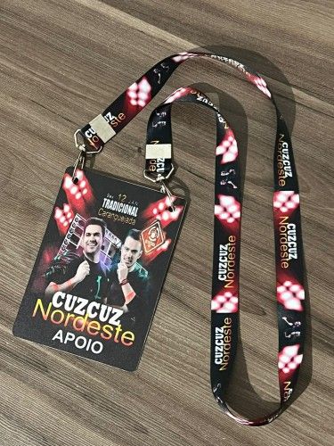 Acompanha: Cordão personalizado digital de 20 mm com acabamento em 2 mosquetes